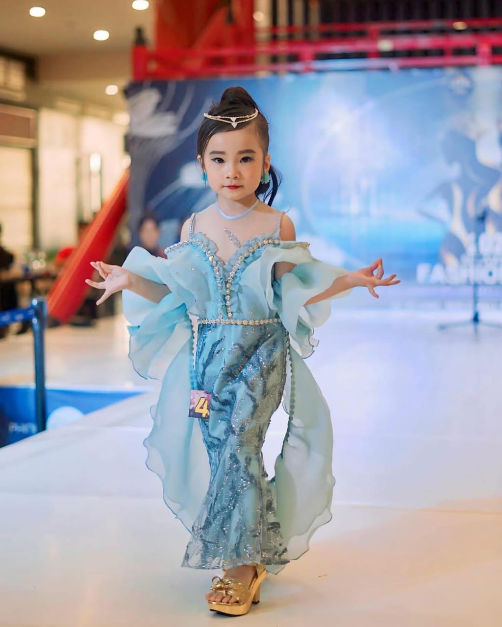 “Kami mendukungnya karena dia punya kepercayaan diri dan semangat yang besar. Setiap kali tampil di fashion show dengan baju cantik dan riasan, matanya selalu berbinar,” ujar sang Mama.