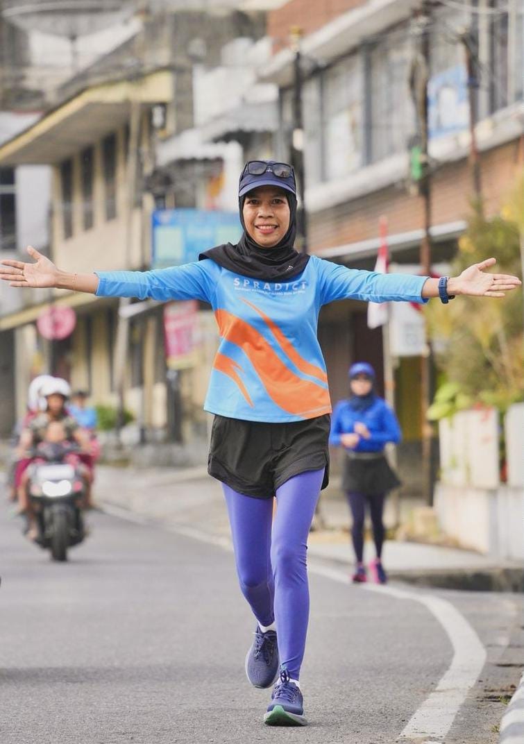 Awalnya ia mulai dengan berlari seorang diri. Lalu pada bulan April 2024 ia memberanikan diri untuk bergabung dengan komunitas lari Spradict yang sebelumnya juga sudah diikuti oleh sang suami. Setelah bergabung dengan komunitas, ternyata seru dan cocok serta berlanjut sampai sekarang.