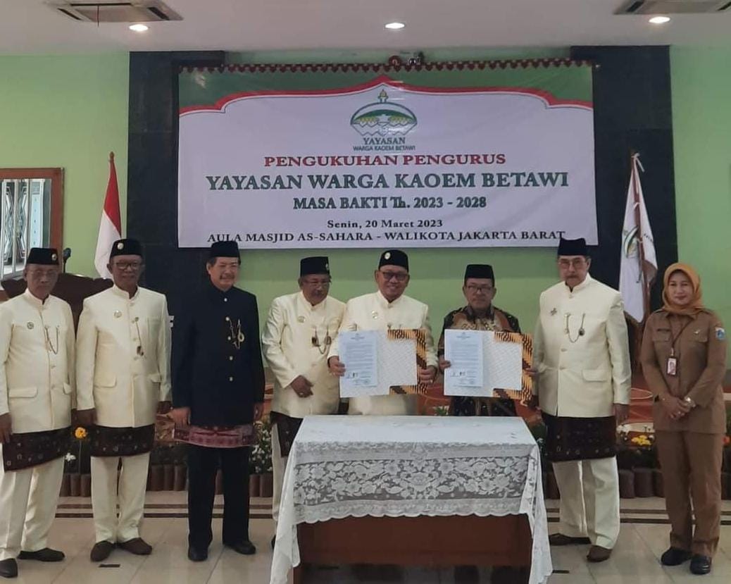 “ Iya, Yayasan Warga KaoemBetawi ini sejatinya Ketua Umumnya almarhum KH.Zaenuddin MZ, saya hanya meneruskan saja karena beliau sudah meninggal duluan, dan ke depan ada program-program dimana beberapa antara lain seperti serah terima wakaf tanah seluas dua ribu meter persegi di Cipondoh, ada juga penandatanganan MoU kami dengan stasiun TV”. urai beliau